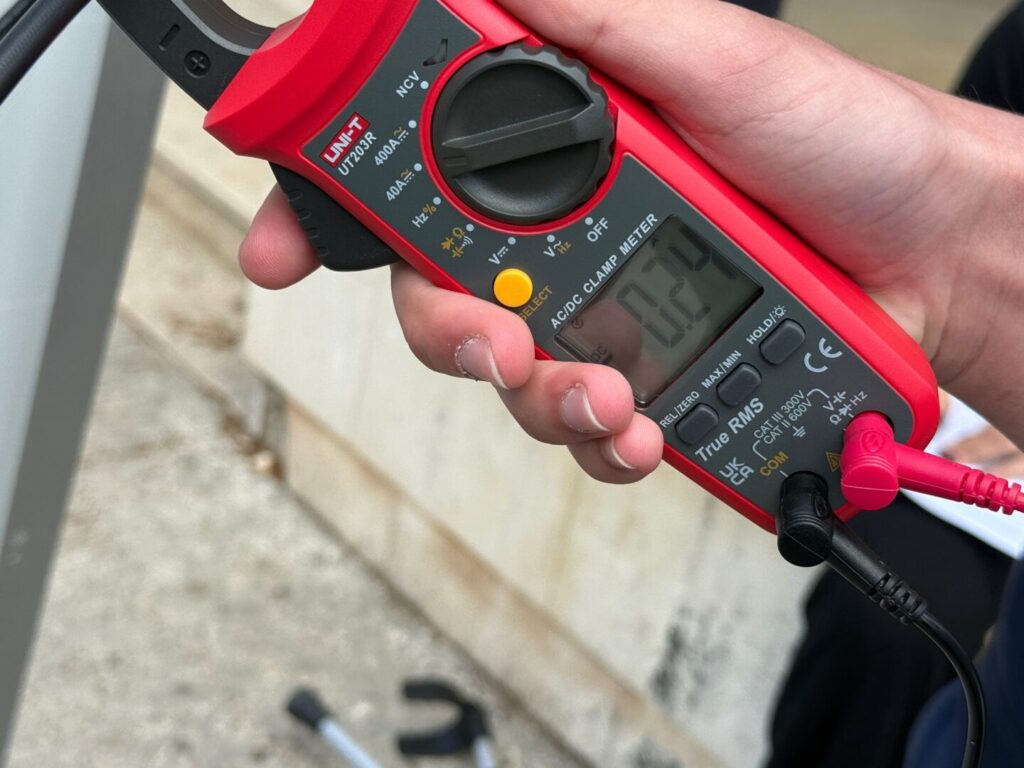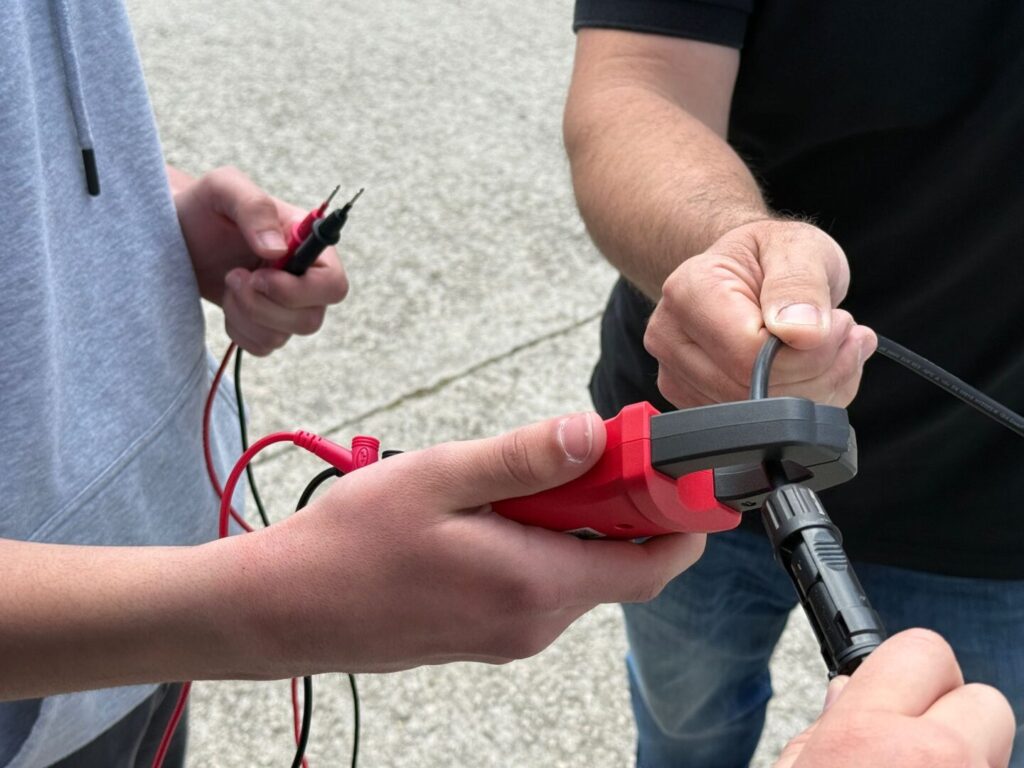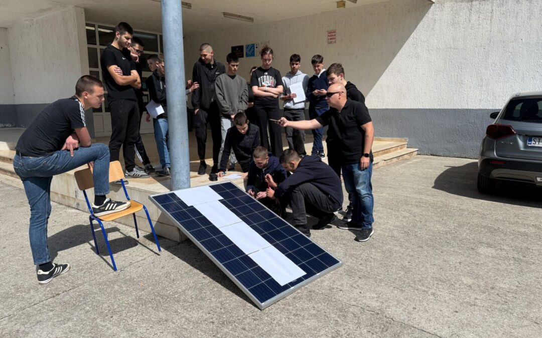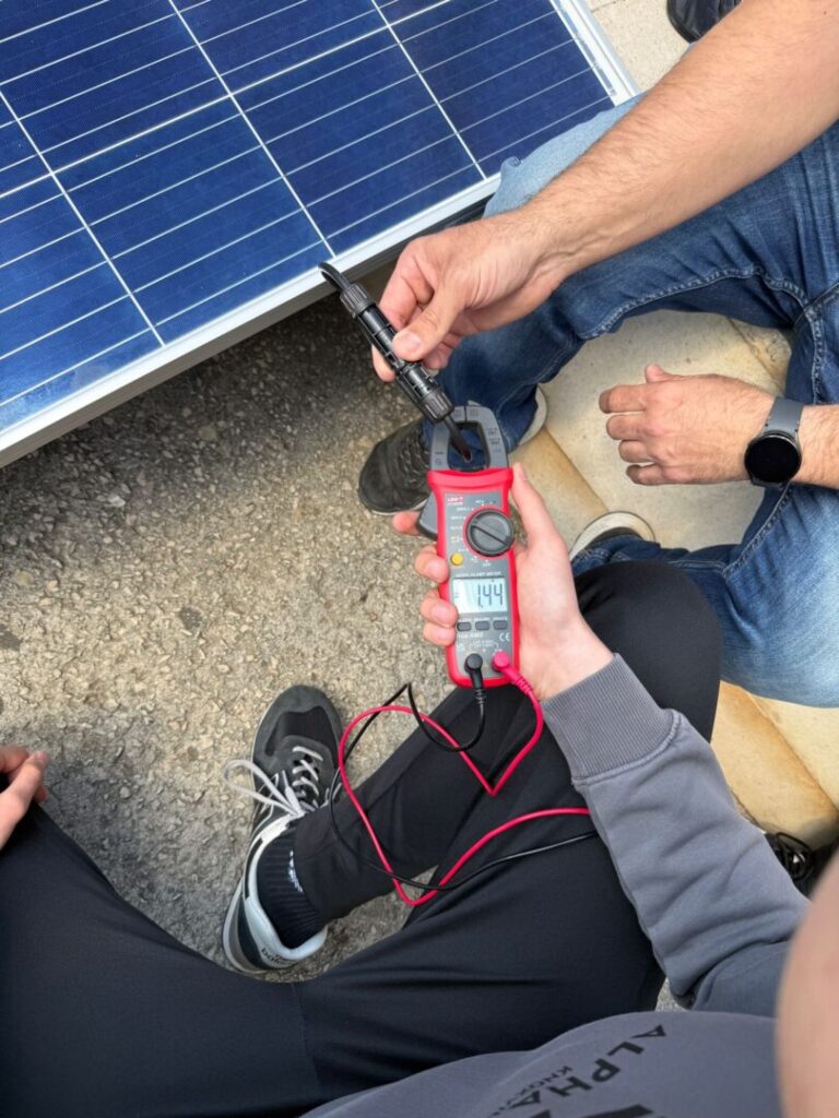 Nakon teorijskog uvoda uslijedila je praktična demonstracija. Učenici su zajedno s voditeljima postavili mali demonstracijski solarni panel i pomoću mjernog instrumenta, voltmetra odnosno multimetra, mjerili napon koji panel proizvodi. Tijekom aktivnosti mijenjali su kut nagiba i orijentaciju panela prema Suncu te promatrali kako se promjene položaja odražavaju na proizvedeni napon.